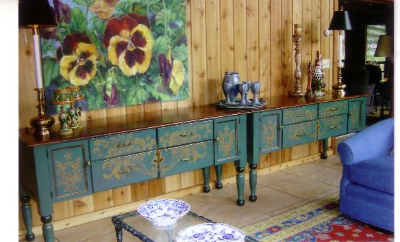 " I would like a place to store table linens and silverware and such in my dining room. I want it to be solid wood, and I want it to sorta' be up on legs. Oh, and I